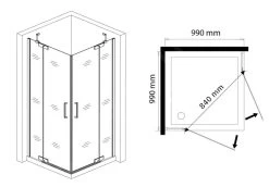 Lansanit LitLUX Slim Tadao – Douchecabine Black Line 900×900 Mm, Mat Zwart/helder Glas PRD99-B