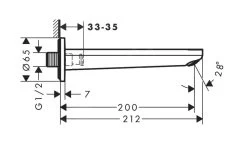 • lengte uitloop: 200 mm