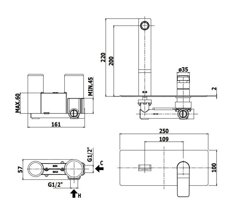 - afmetingen afdekplaat 250 x 100 mm
