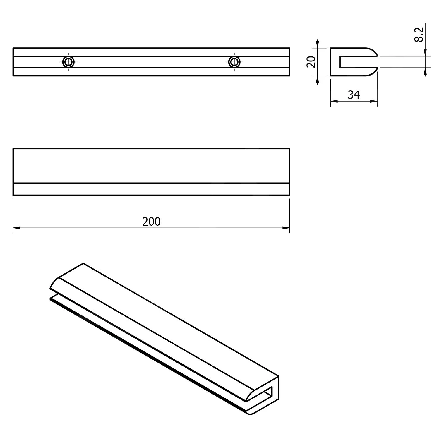 - afmetingen 200 × 20 × 34 mm